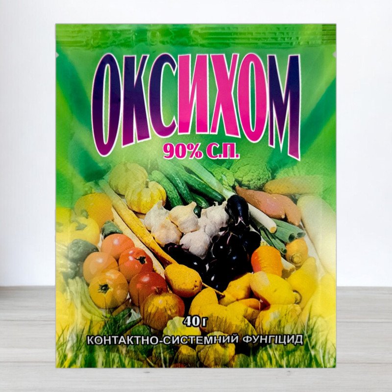 Фунгіцид Оксихом – потужний засіб для профілактики та лікування грибних захворювань садових та кімнатних рослин. Складений на основі хлороксиду міді та оксадиксилу, Оксих забезпечує надійний захист від широкого спектру хвороб, включаючи фітофтороз, макроспоріоз, чорну бактеріальну плямистість, септоріоз, паршу, мілдью, а також борошнисту і несправжню росу.