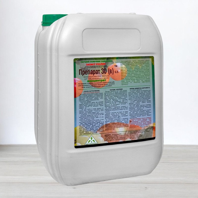 Препарат 30-В – ефективний інсекто-акарицид, призначений для комплексного захисту плодово-ягідних, декоративних культур та винограду від зимуючих стадій шкідників. Цей препарат поєднує функції інсектоцидів і фунгіцидів, забезпечуючи надійний захист рослин.