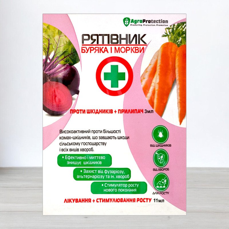 Примітка: Препарат має комплексну дію, поєднуючи інсектицидні, фунгіцидні та стимуляторні властивості, що робить його ідеальним вибором для ефективного захисту буряків та моркви.