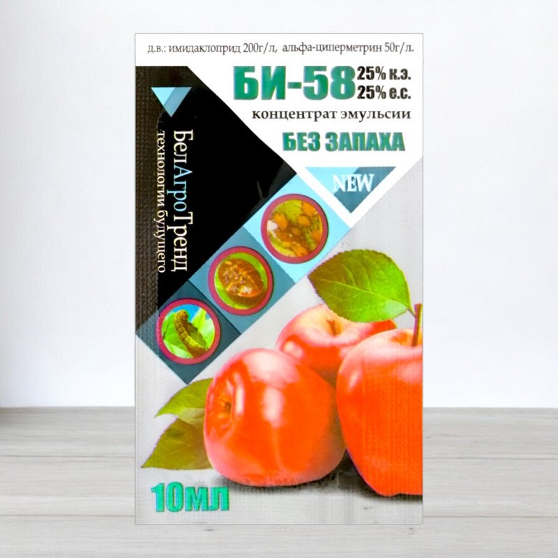 Інсектицид Бі-58 — системний фосфорорганічний препарат пролонгованої дії, який забезпечує контроль попелиці, білокрилки, трипсів, кліщів та мінуючих шкідників. Проникає як через лист, так і через кореневу систему, забезпечуючи внутрішній захист усієї рослини, включно з молодими приростами.