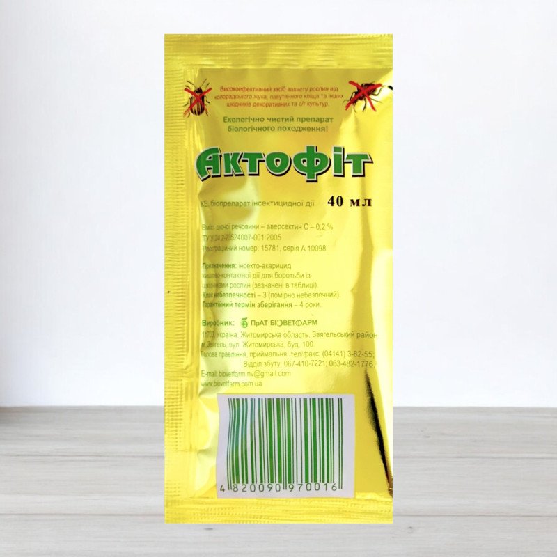 Актофіт — природний інсектицид біологічного походження з паралітичним ефектом, створений на основі аверсектину С — метаболіту ґрунтового гриба Streptomyces avermitilis. Діє як при потраплянні в організм шкідника, так і через контакт з обробленою листовою поверхнею.