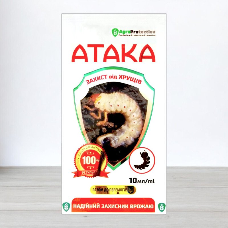 Інсектицид Атака Хрущ — ґрунтовий препарат контактно-кишкової дії, призначений для знищення личинок хруща, дротяника та ведмедки у прикореневій зоні. Застосовується виключно шляхом внесення у ґрунт — не обприскуванням, а під корінь, для захисту овочевих, ягідних, плодових і декоративних культур на стартових етапах вегетації.