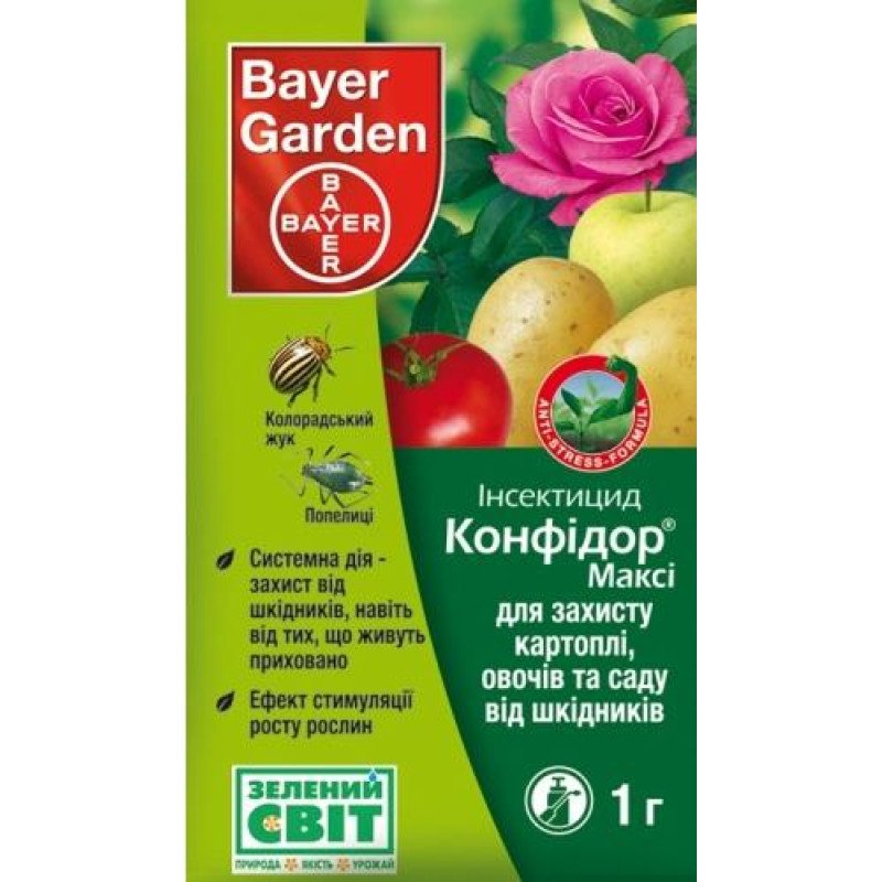 Інсектицид Конфідор Максі — системний неонікотиноїд на основі імідаклоприду 700 г/кг (WG), діє контактно та через харчування, швидко блокує нервову систему шкідників і припиняє їх харчування. Ефективний проти попелиці, трипсів, білокрилки, цикадок, щитівок та колорадського жука. Підходить як для обприскування по листку, так і для внесення під корінь.