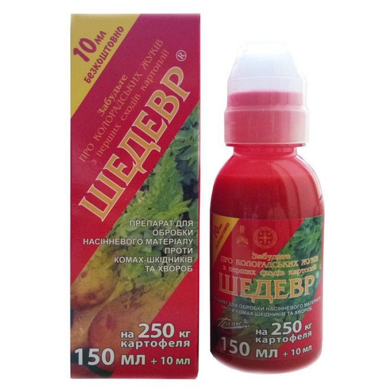 Крім того, Шедевр сприяє покращенню якості врожаю, підвищуючи його стійкість до інфекційних захворювань та покращуючи зовнішній вигляд плодів. Він ідеальний як невеликих фермерських господарств, так великих сільськогосподарських підприємств, дозволяючи значно підвищити економічну ефективність агровиробництва.
